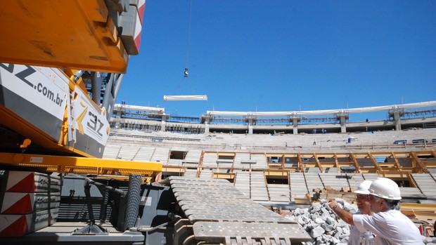 Quando estiverem prontas, as arquibancadas servirão de apoio da estrutura metálica que sustentará a nova cobertura. Depois de instalados os cabos tensionados, serão içados, simultaneamente, por 120 macacos hidráulicos. Os cabos tensionados têm 20 mil metros de comprimento.